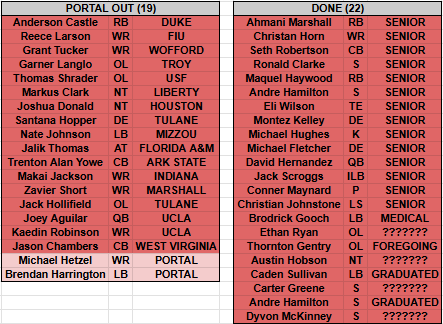 As far as the Done column, the ones with ????? are likely walk-ons who will stay enrolled but not play anymore. That’s normal every offseason. Thorton Gentry could come back but decided against it.