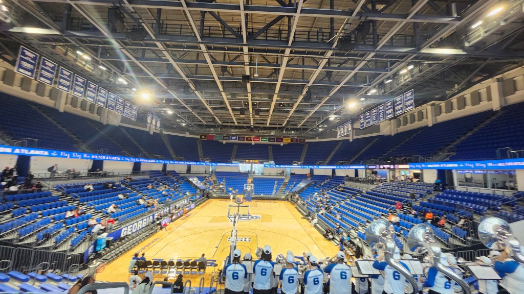 The GSU Convo is a nice, new arena. Parking is right across the street and there’s a parking deck on one side. And you don’t have to go up any stairs to get in.