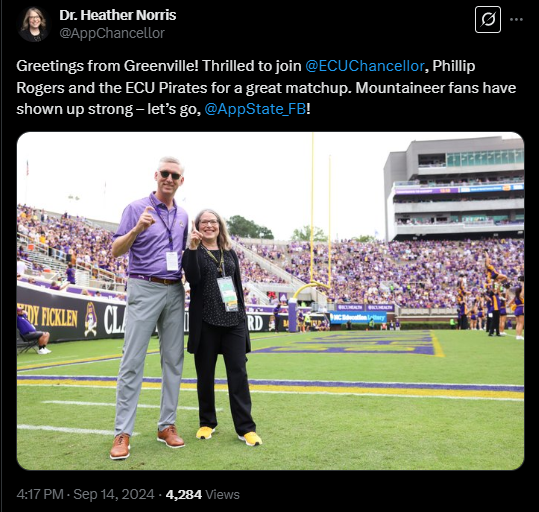 It was a pleasant surprise that everyone involved with App State liked. Seriously, I haven’t seen one negative comment on App State Chancellor Heather Norris.