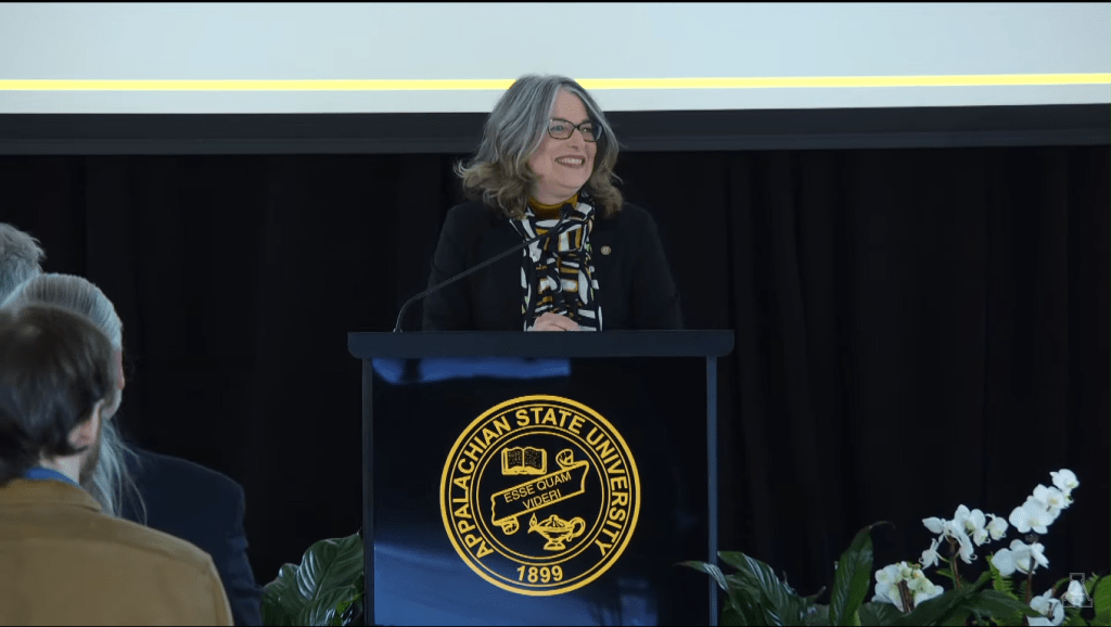 On Thursday, search committee chair Deanna Ballard, that former Republican state senator and Samaritan’s Purse administrator mentioned earlier, asked Norris to pronounced “ap-puh-LATCH-an.” That wasn’t just a fun little moment. Everts had multiple public gaffes saying “ap-puh-lay-shun” in 2014 and 2015 (every time, she immediately realized what she said, corrected herself and apologized). The message is clear, Heather Norris and App State are intertwined.