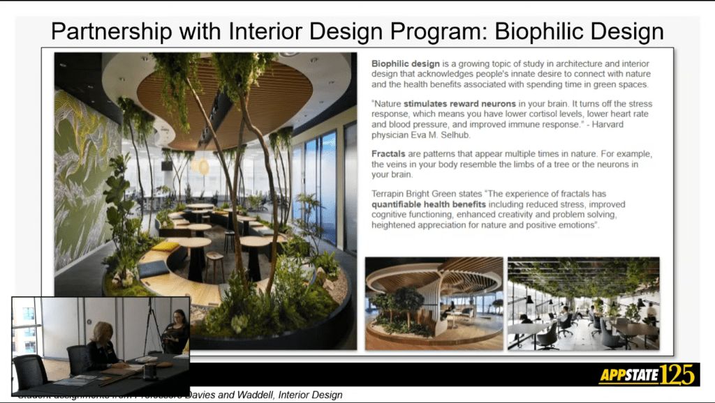 One idea is to use biophilic design elements. Students want more signage as students don’t know where things are.