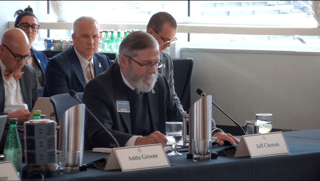 Several minutes later, the committee chair says the next part is fascinating. It’s about AI in higher education. Guess what? We’re doing wonderful at this, says the guy.