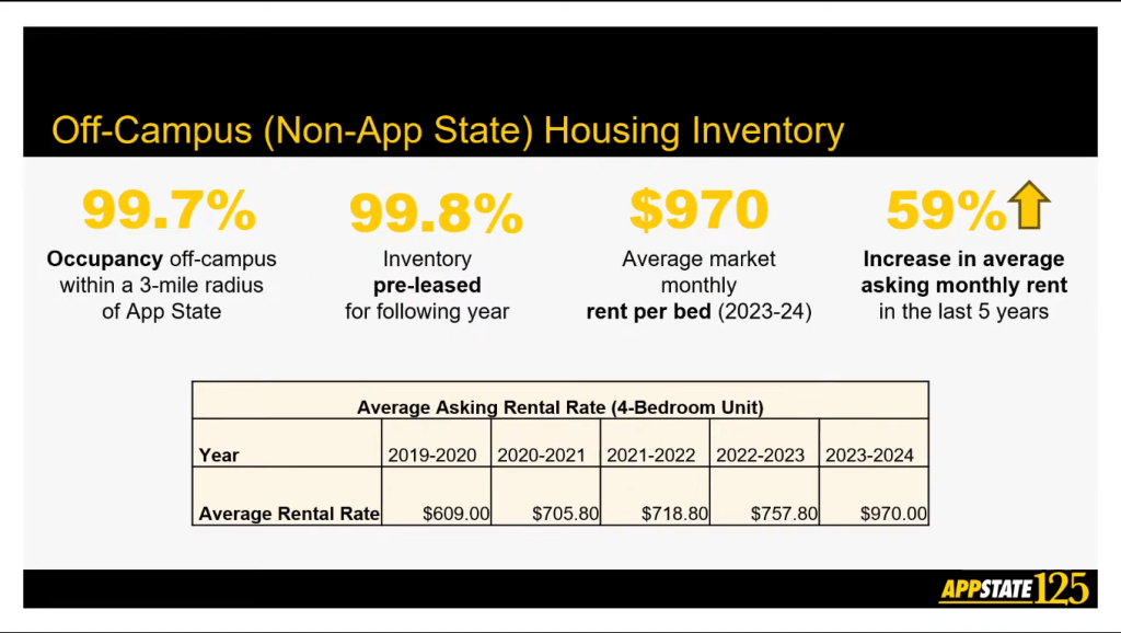 Since 2020, only 517 beds have been introduced into the off-campus housing market, more focused on workforce housing.