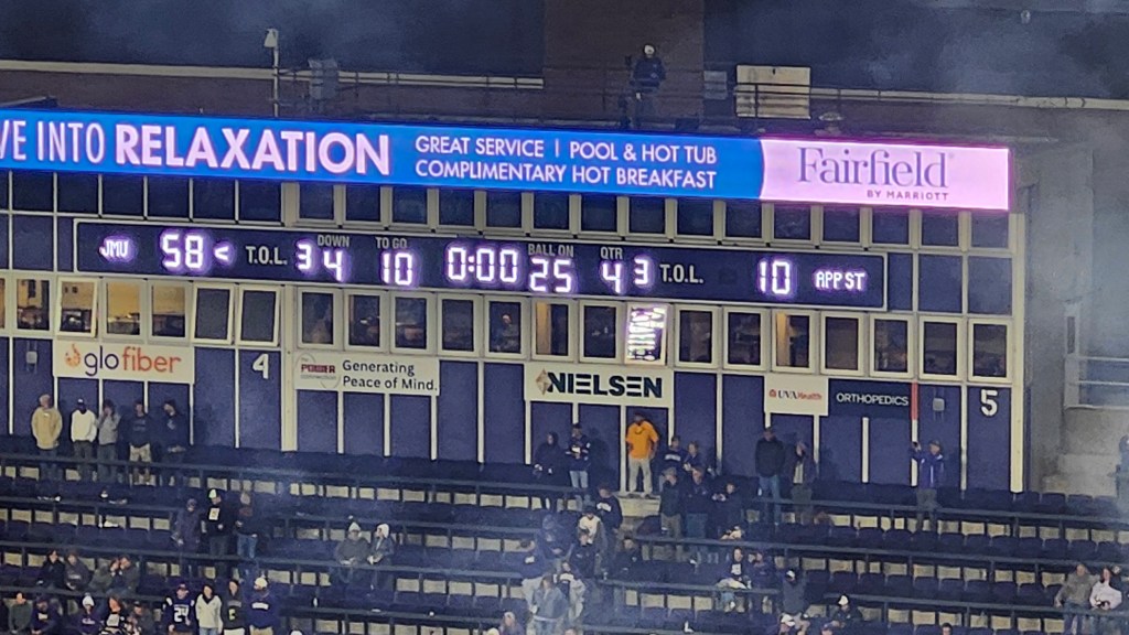 Throw out the fourth quarter stats. This App State offense had 29 total yards through three quarters. JMU had more than 29 points.