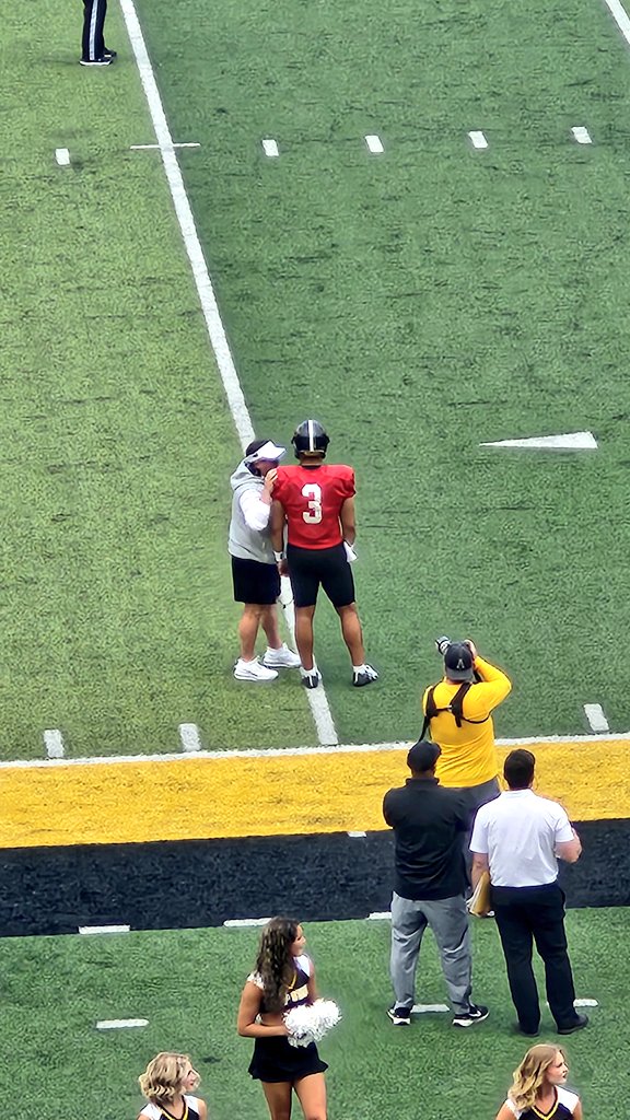 If the QB1 versus Maine isn’t Malachi Singleton, it’s due to injury. He got the first reps and you saw why. Out of everyone, he consistently put the ball in the strike zone for his receivers. His arm strength in less than either of last year’s main QBs, but he offers something Dowell covets: a run option.