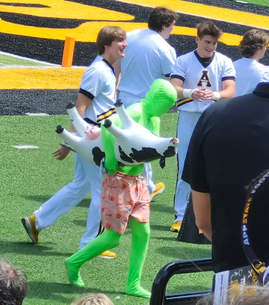 Basic overview things. The team wasn’t wearing any App State logos on the helmets, instead wearing the T.N.P. mantra they’ve worn all spring. It stands for The Next Play.